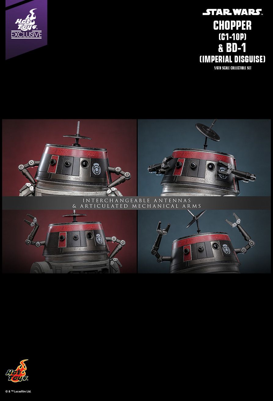 The 1/6th scale Chopper (C1-10P™) & BD-1™ (Imperial Disguise) Collectible Set specially features: