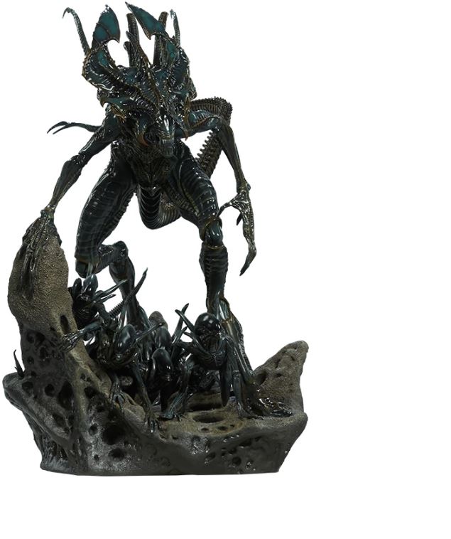 Standing a massive 20" tall and 21" long, the Alien King Maquette strikes a pose of unrelenting drive and energy, accentuated by the seven detailed alien warriors that swarm around his clawed feet.